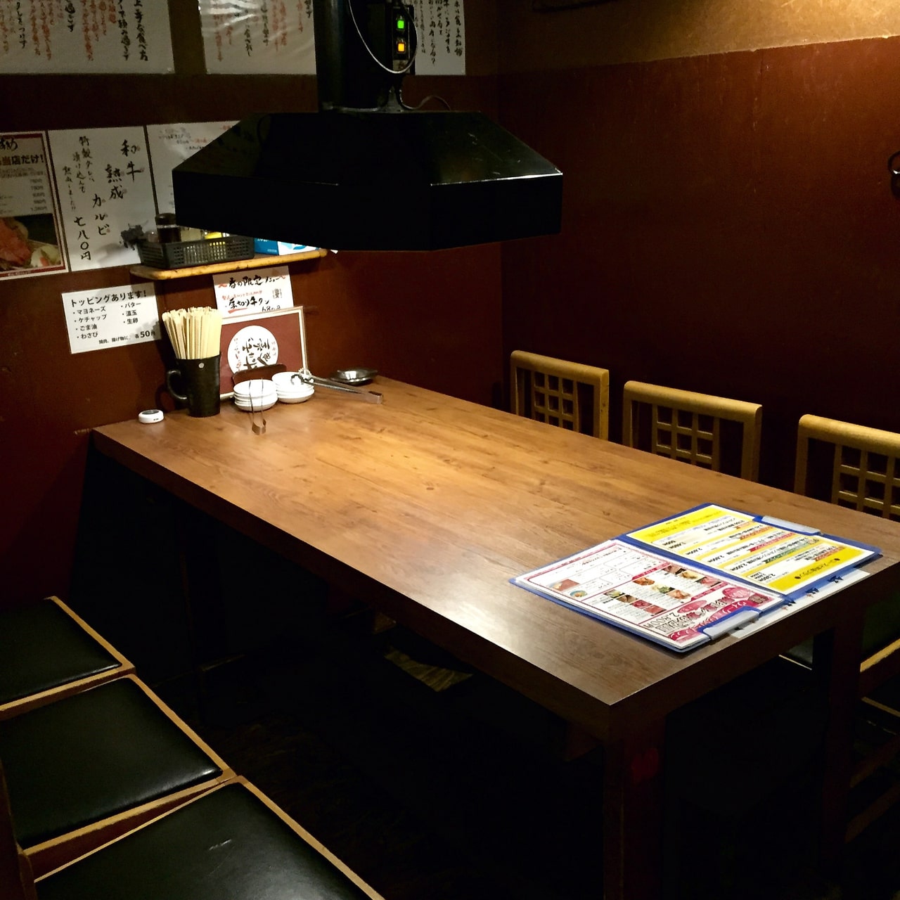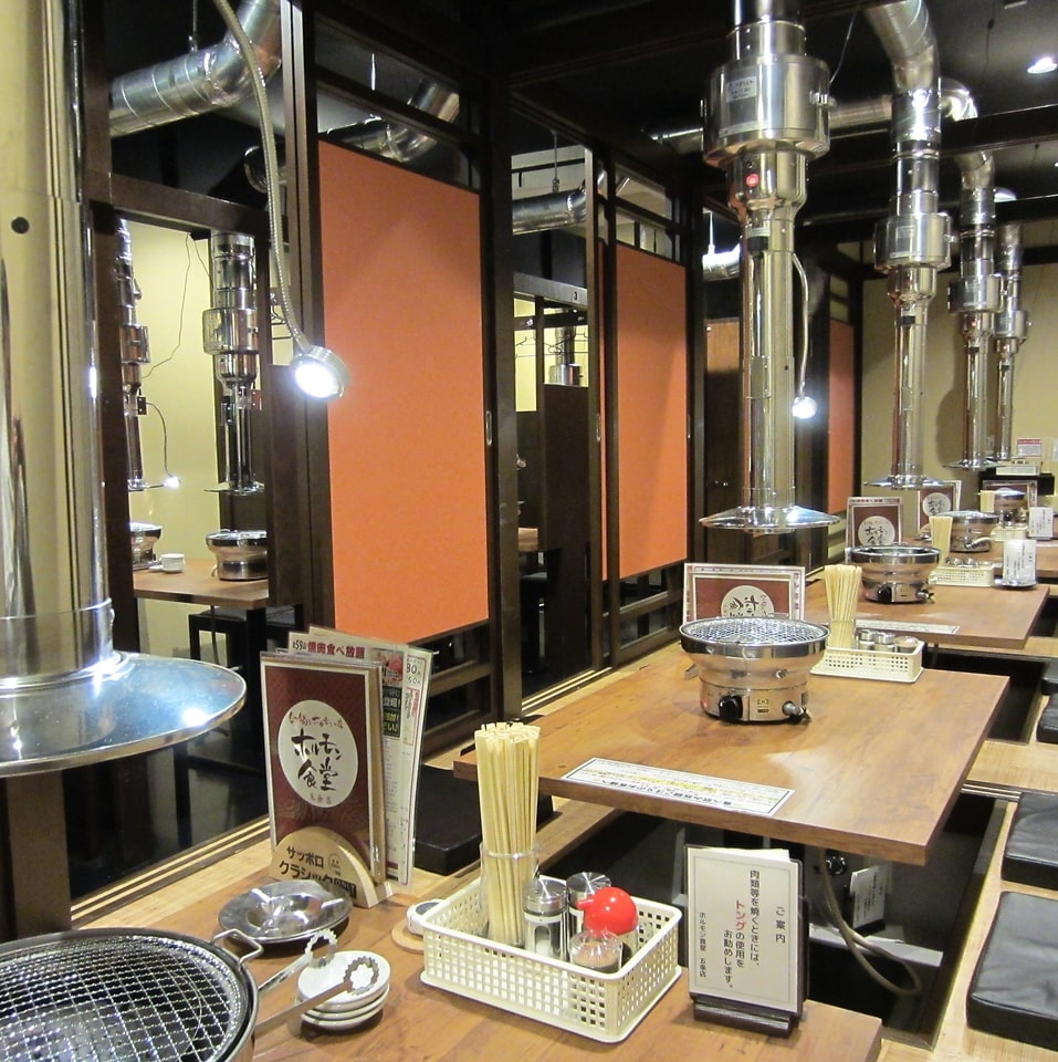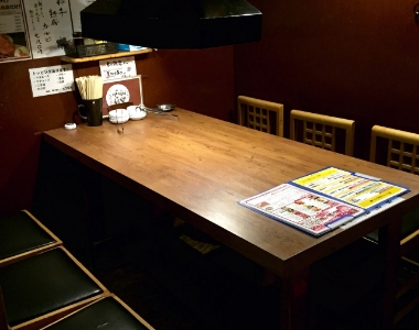 ホルモン食堂の店内はすべて個室感覚のプライベート空間。2名〜4名程度の小上がりをはじめ、家族連れやグループ向けの仕切りで区切られたテーブル席、40名以上の団体にも対応できるお座敷など、ニーズに合わせてご利用いただけます。もちろん貸し切りもOK!各席にダクトを完備した快適な空間で、くつろぎながら焼肉をお楽しみください。